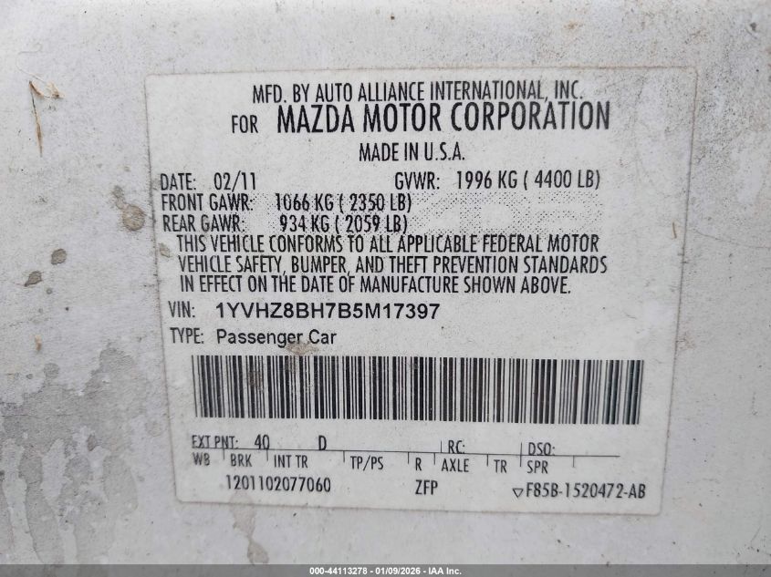 - Vin: 1YVHZ8CH3D5M11114