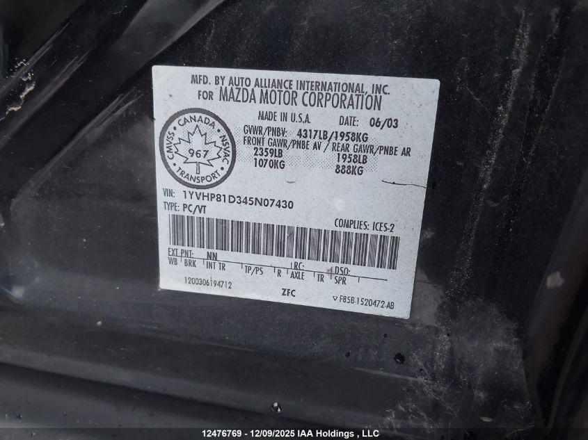 - Vin: 1YVHP80C875M52826