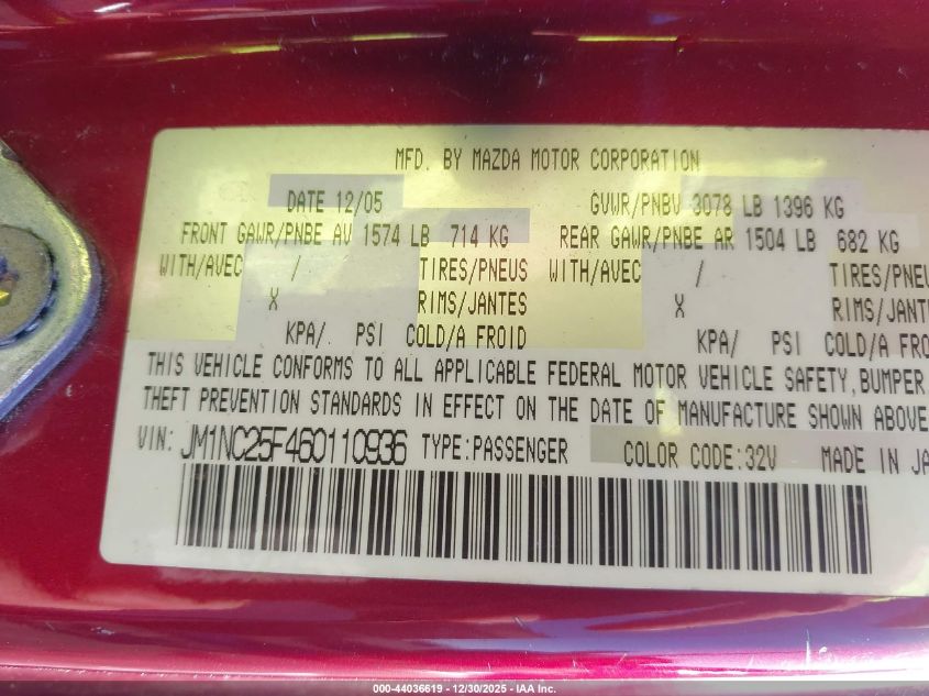 - Vin: JM1NC25F460110936