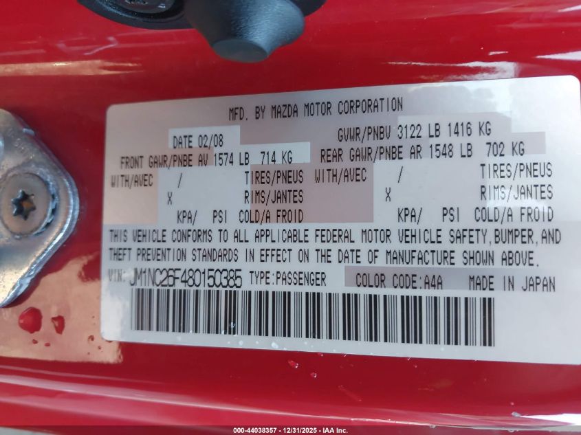 - Vin: JM1NC25F080138767