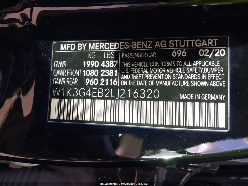 - Vin: WDD3G4EBXLW039003