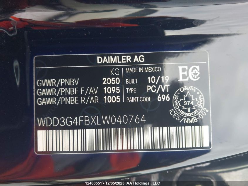 - Vin: WDD3G4FBXLW040764