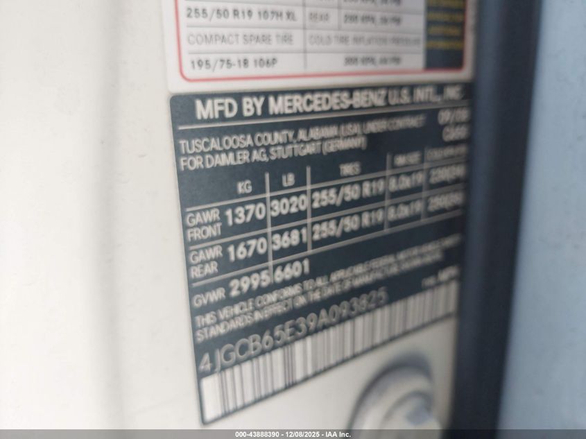 - Vin: 4JGCB65E39A093825