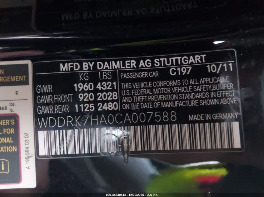 - Vin: WDDRK7HA0CA007588