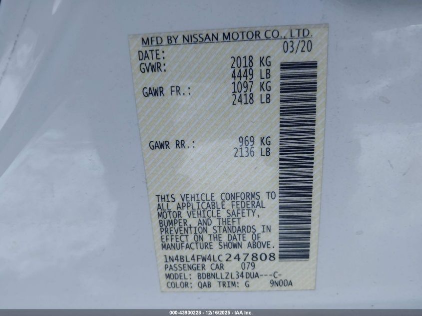 - Vin: 1N4BL4FW4LC247808