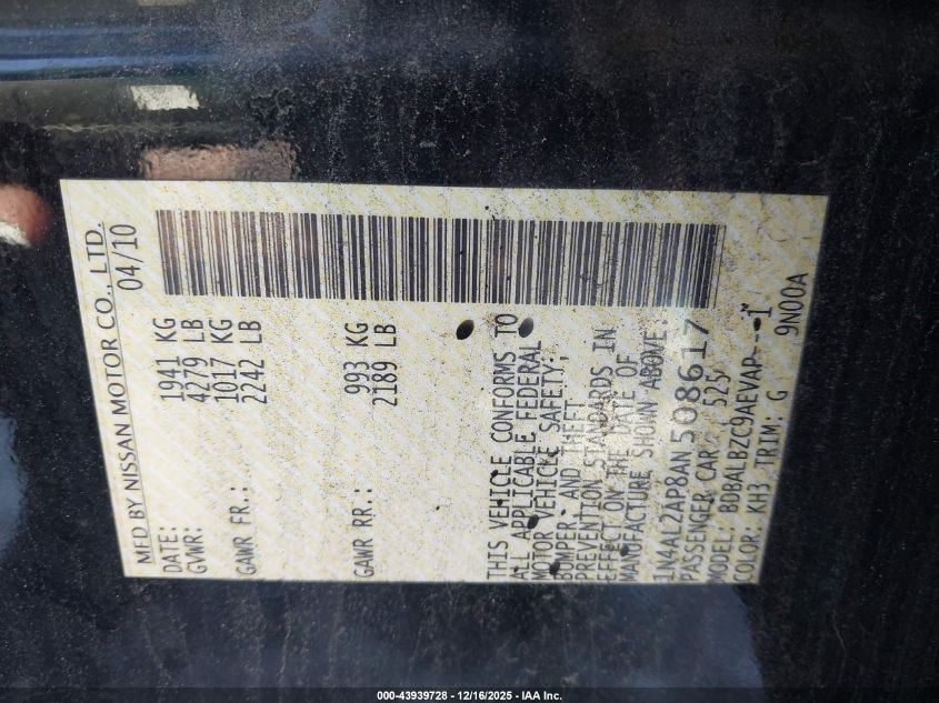 - Vin: 1N4AL2AP8AN508617