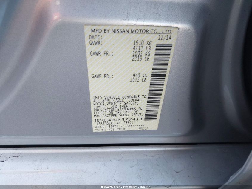 - Vin: 1N4AL3AP4FN377411