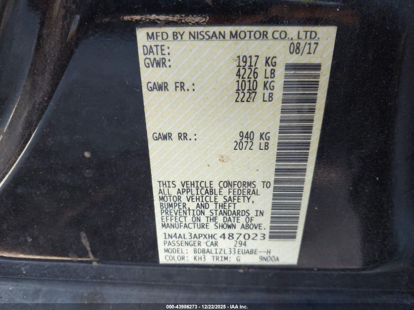 - Vin: 1N4AL3AP9HC253309