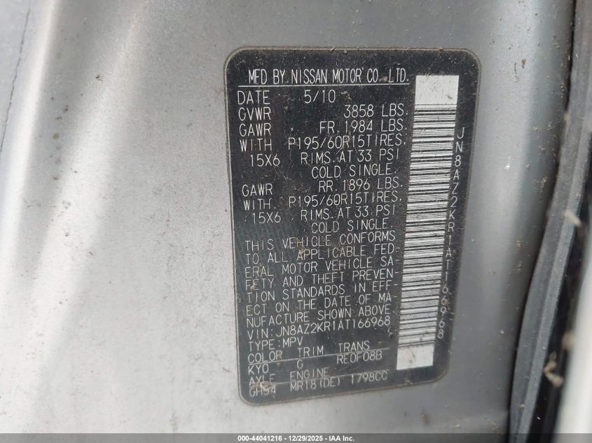 - Vin: JN8AZ2KR1AT166226