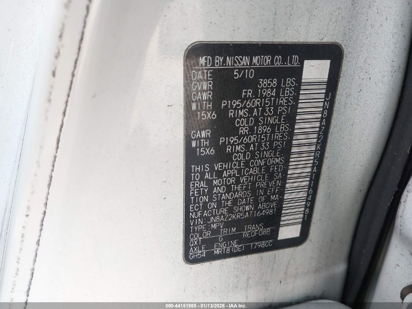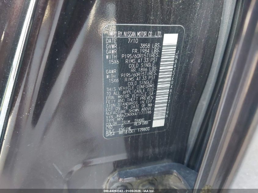 - Vin: JN8AZ2KRXAT171196