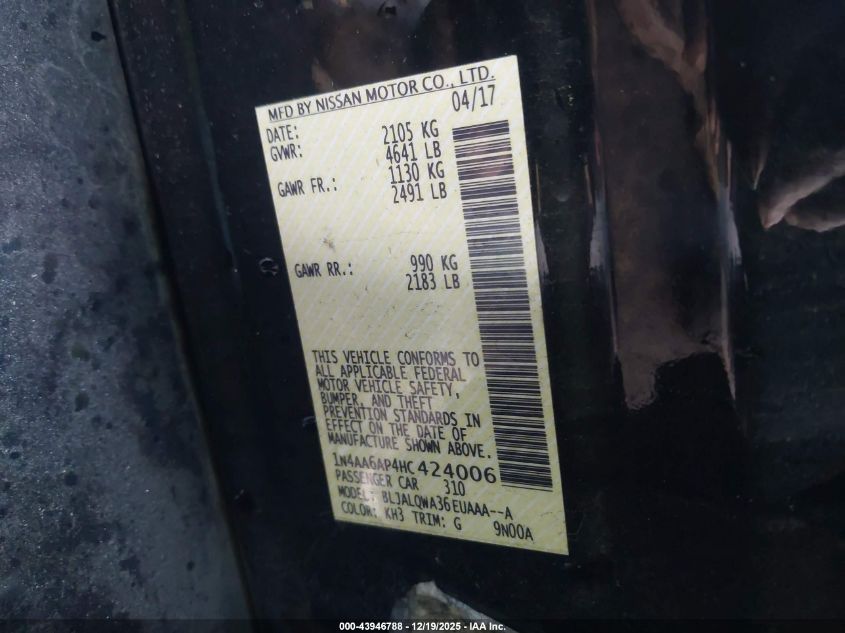 - Vin: 1N4AA6AP4HC424006