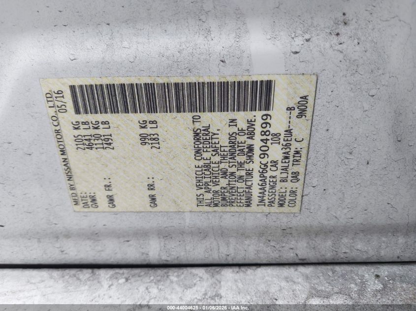 - Vin: 1N4AA6AP6GC904899