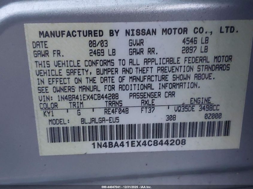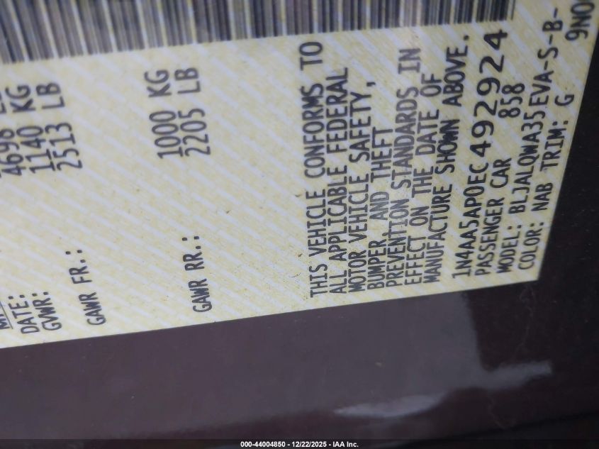 - Vin: 1N4AA5AP4CC844335