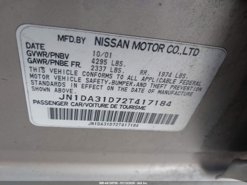 - Vin: 1N4AA5AP8EC442627