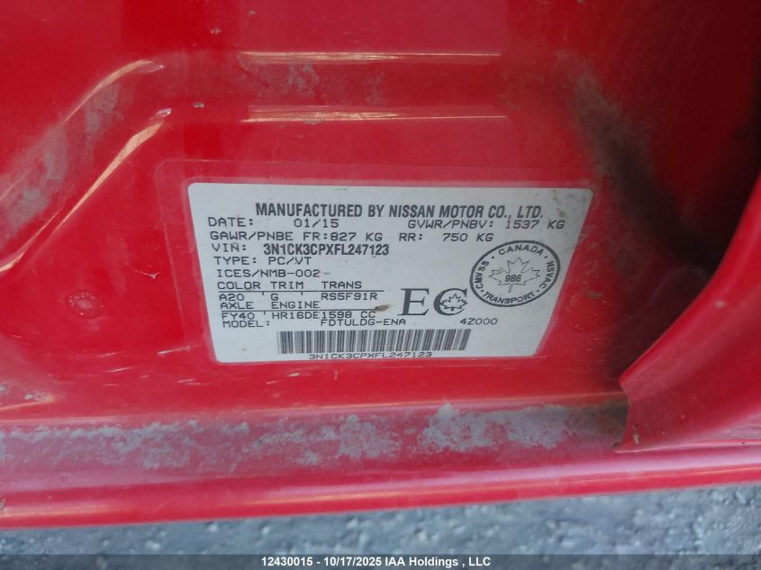 - Vin: 3N1CK3CPXFL247123