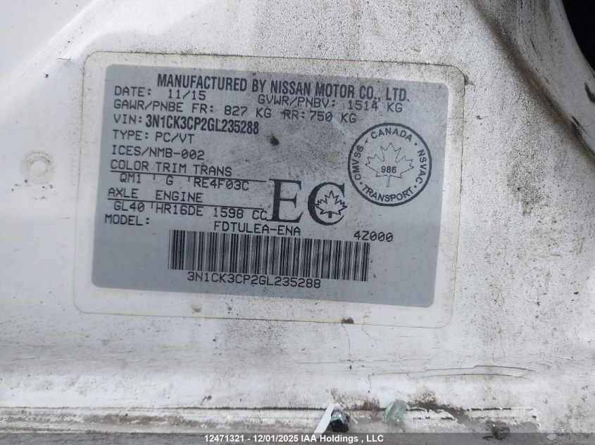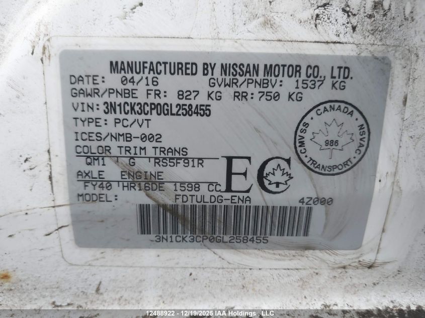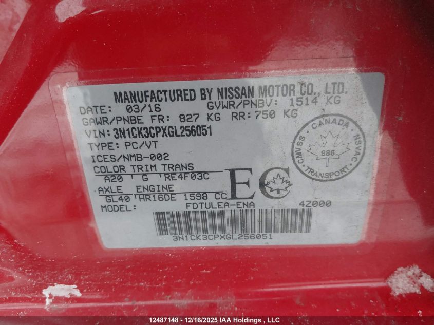 - Vin: 3N1CK3CPXGL256051