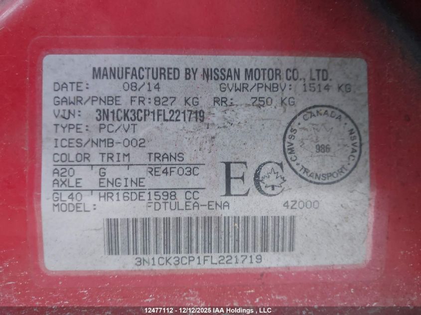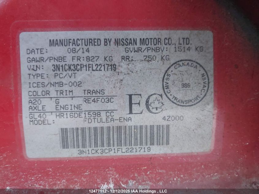 - Vin: 3N1CK3CPXFL211903