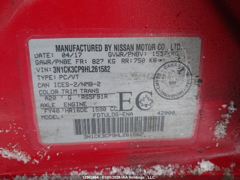 - Vin: 3N1CK3CP9HL261582
