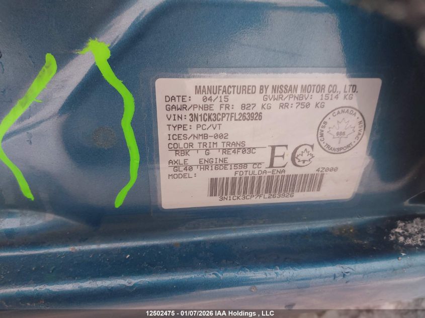 - Vin: 3N1CK3CP6FL263237