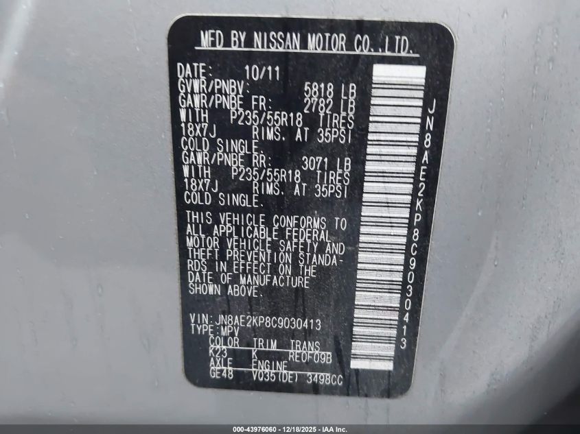 - Vin: JN8AE2KP8C9030413