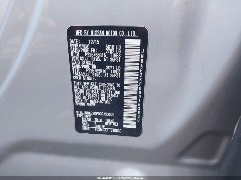 - Vin: JN8AE2KP6G9152810