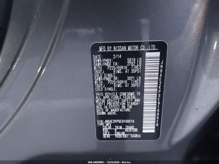 - Vin: JN8AE2KP5E9108519