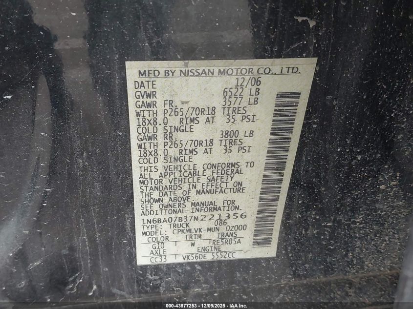 - Vin: 1N6AA07A07N208230