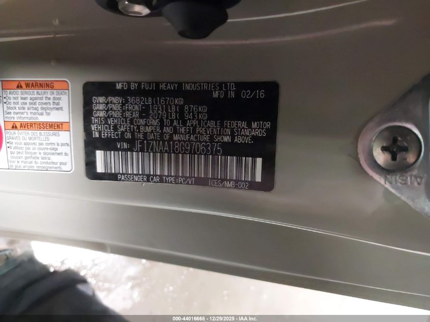 - Vin: JF1ZNAA18G9706375