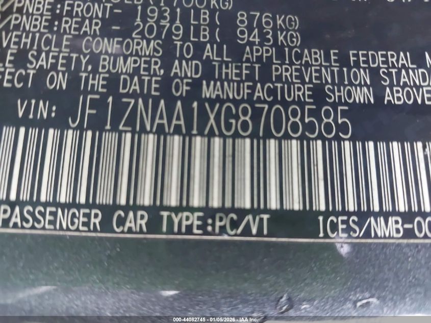 - Vin: JF1ZNAA1XG8708585