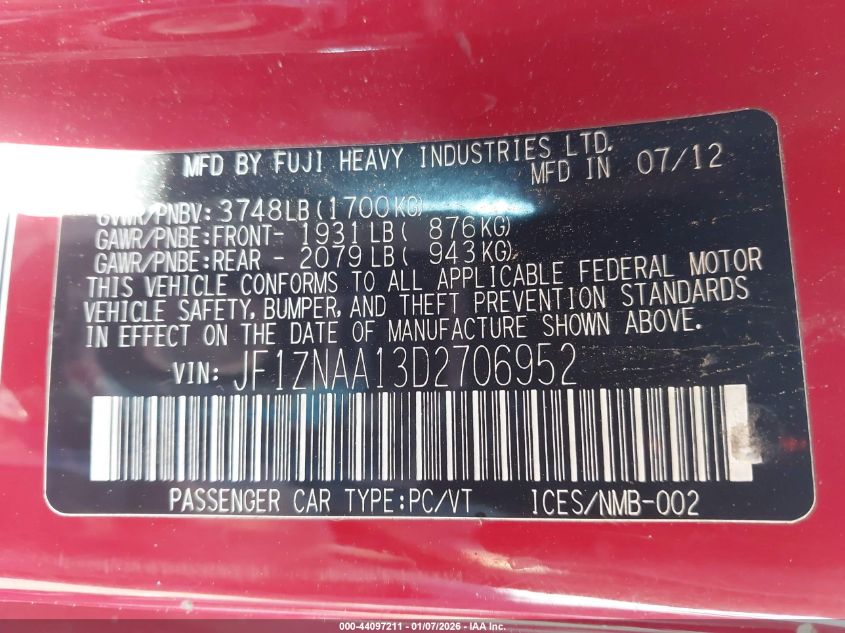 - Vin: JF1ZNAA13D2706952