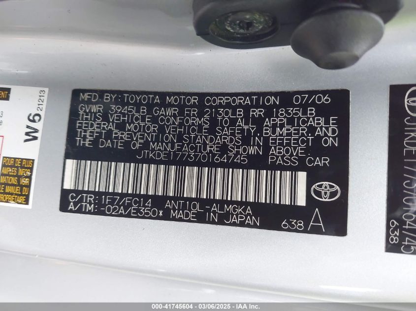 - Vin: JTKDE177370164745