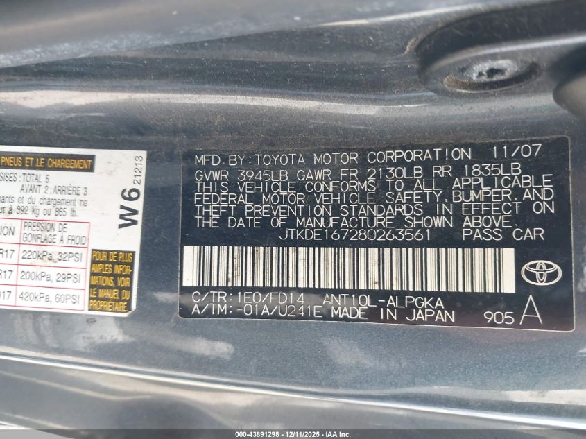 - Vin: JTKDE167280263561