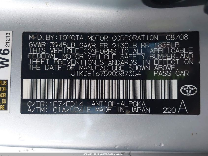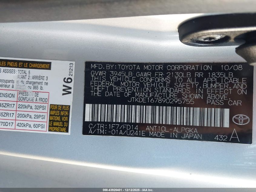 - Vin: JTKDE3B79A0318773
