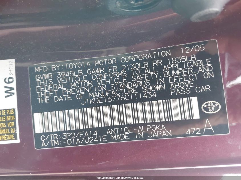 - Vin: JTKDE167760111434