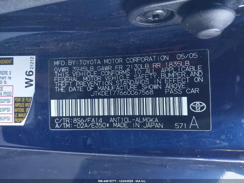 - Vin: JTKDE177660067568