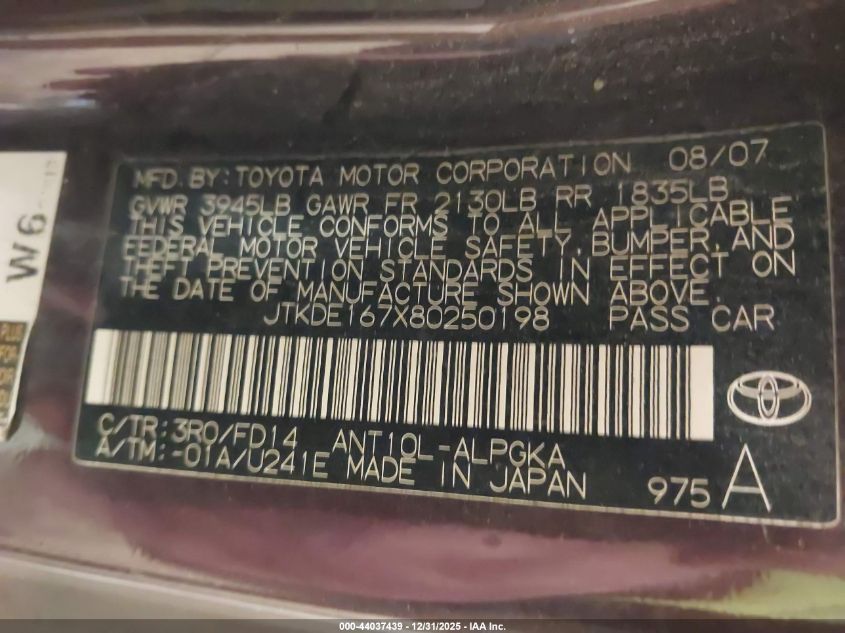 - Vin: JTKDE167X80250198