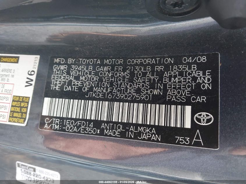- Vin: JTKDE167390275901