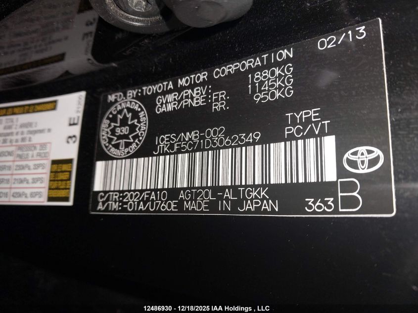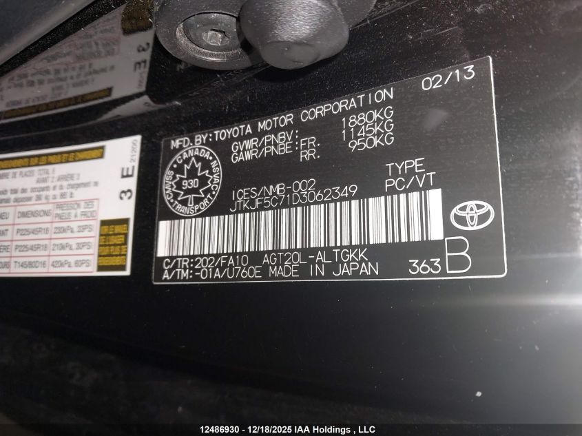 - Vin: JTKJF5C71D3062349