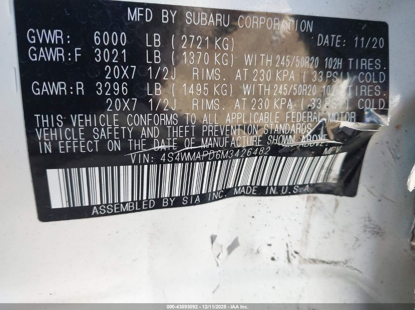 - Vin: 4S4WMAPD6M3426482