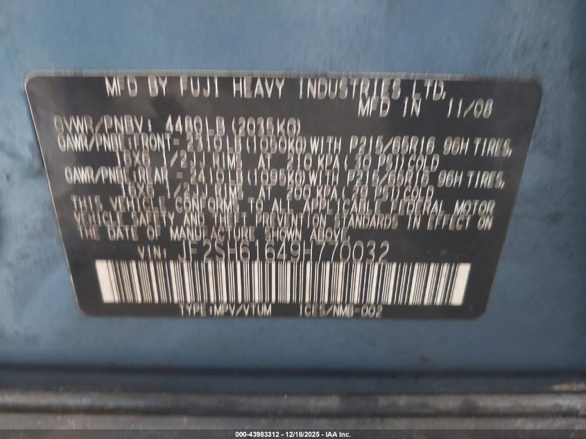 - Vin: JF2SH646X9H735412