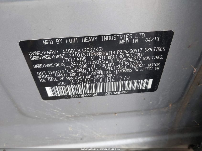 - Vin: JF2SJAEC0EH441779