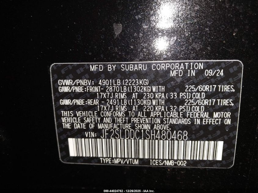 - Vin: JF2SLDDC1SH480468