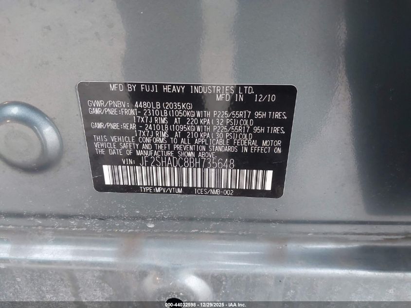 - Vin: JF2SHADC8BH735648