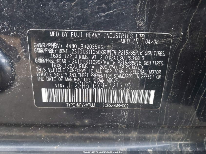 - Vin: JF2SH616X9H721370
