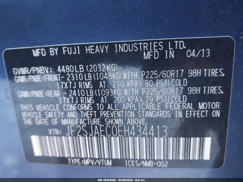 - Vin: JF2SJAEC0EH434413