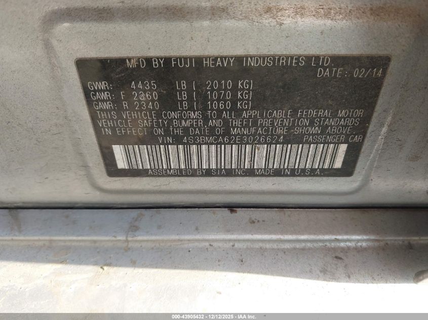 - Vin: 4S3BMCA62E3026624