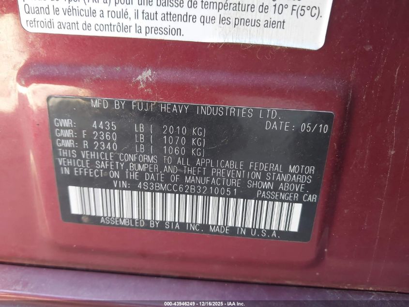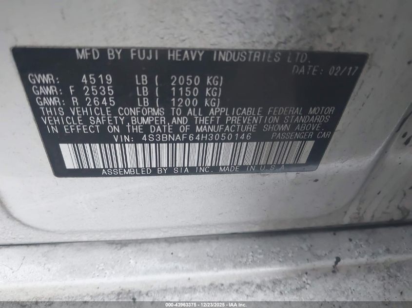 - Vin: 4S3BNAF64H3050146