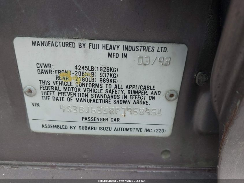 - Vin: 4S3BJ6338P7958951