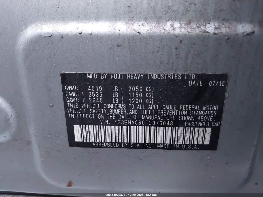 - Vin: 4S3BNAC60F3076048