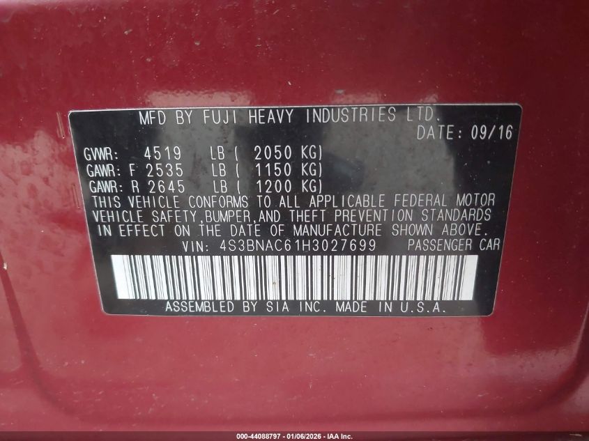 - Vin: 4S3BNAC61H3027699